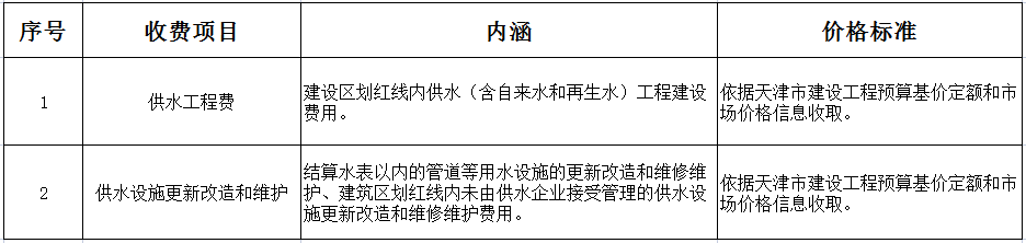 供水工程收费项目清单