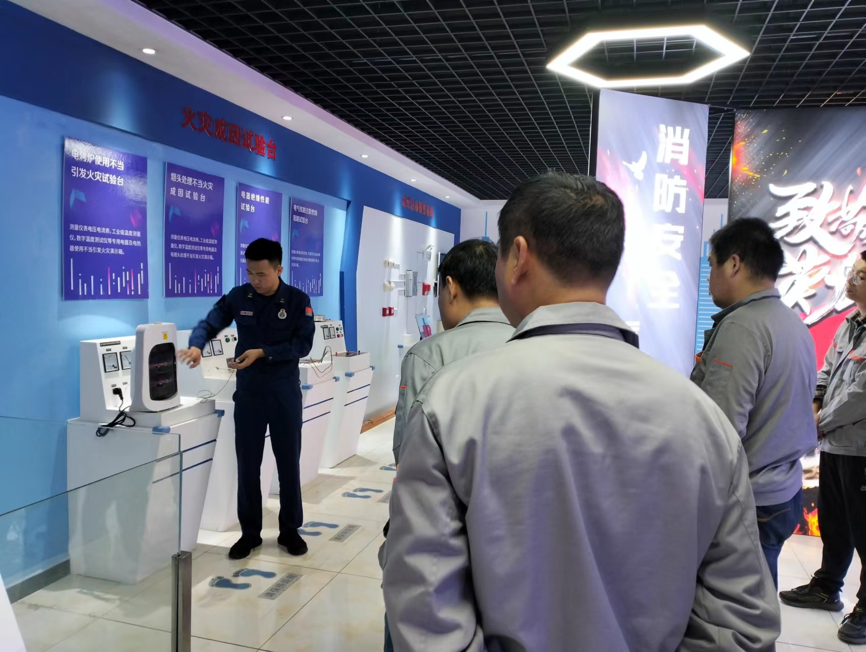 在科普基地内,宣传人员介绍了基地内各个展区设施的作用以及操作方法,借助展区设施向参观人员讲解了火灾形成的原因、自救与逃生、安全标志、火灾预防等方面消防安全知识,演示了常见的灭火器材的使用方法。参观人员在讲解结束后迫不及待地开始自主体验模拟报警、场景模拟等区域,以亲身参与、实地体验的方式检验参观学习成果。