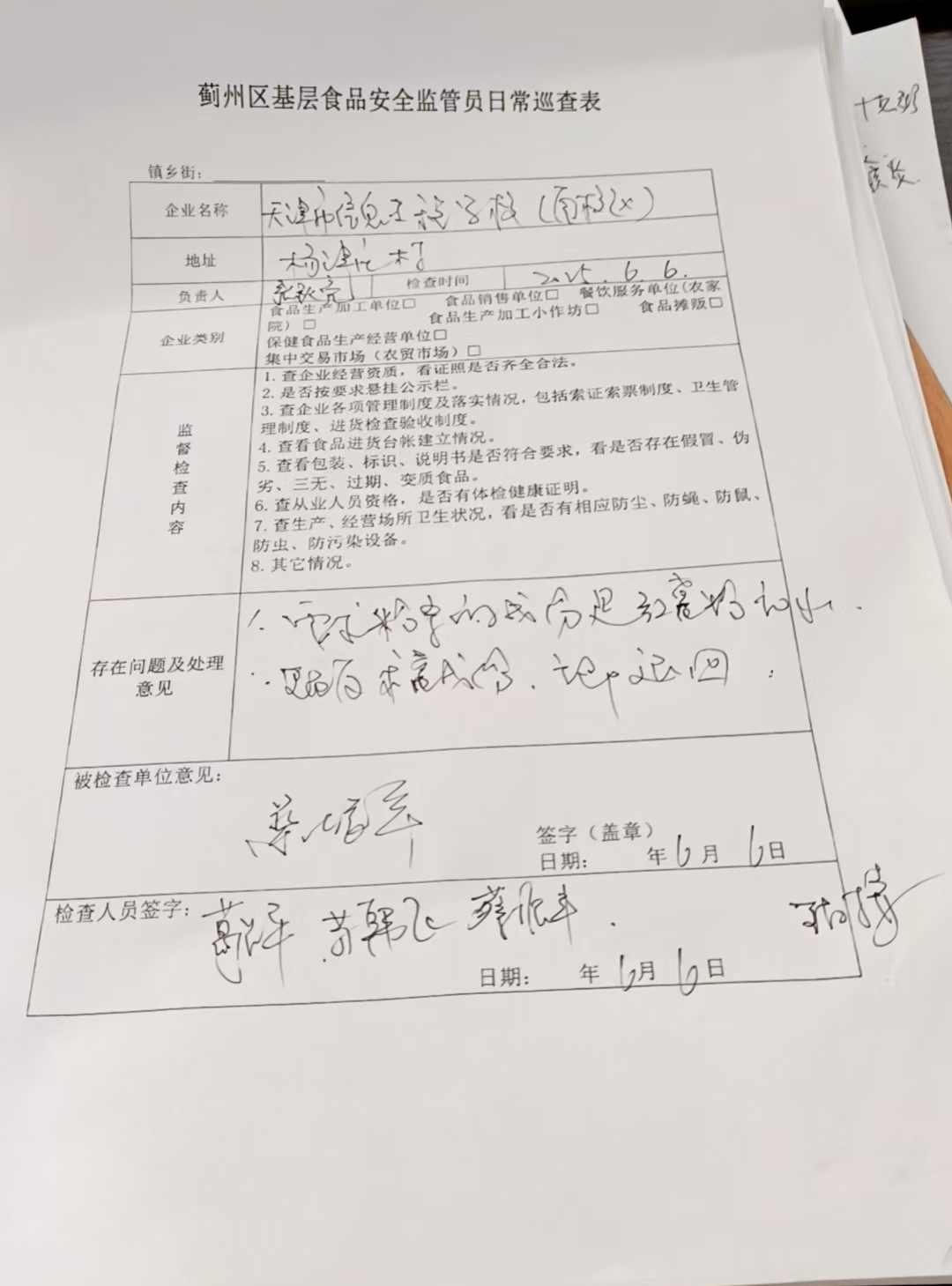 杨津庄镇基层食药品安全监管员日常