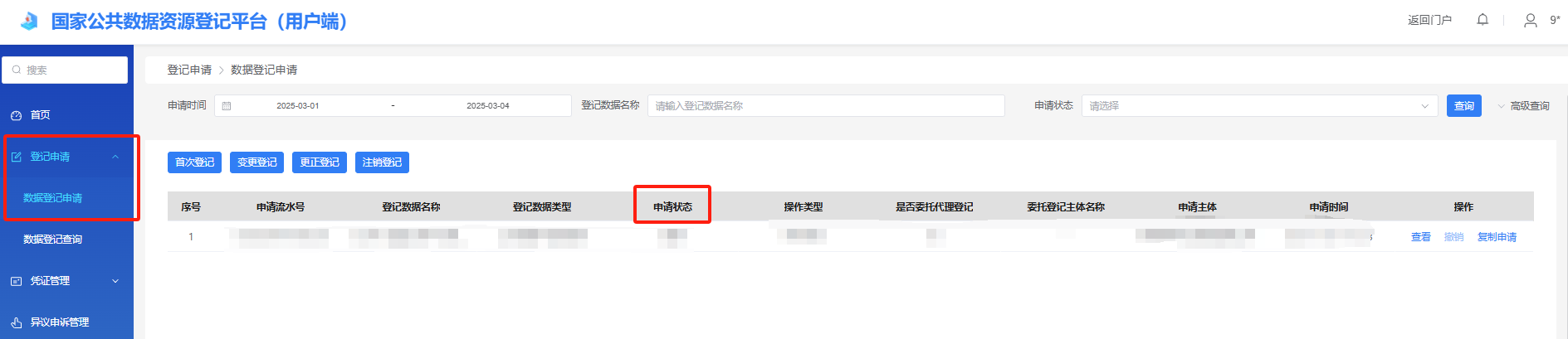 3.登记申请状态查询